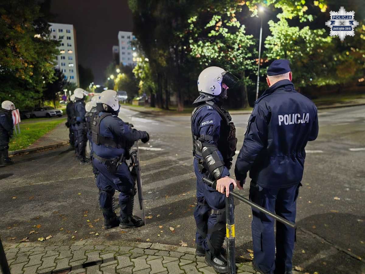 W sobotę na Stadionie Miejskim w Jastrzębiu-Zdroju odbył się mecz piłki nożnej pomiędzy GKS-em Jastrzębie a KKS 1925 Włókniarzem Kalisz. Wydarzenie to przyciągnęło uwagę nie tylko kibiców, ale także policji, która zorganizowała szeroko zakrojone działania zabezpieczające. W akcji uczestniczyło około 157 funkcjonariuszy z Jastrzębia-Zdroju, Bielska-Białej, Katowic oraz Częstochowy. Policjanci, w tym przewodnicy z psami służbowymi, byli obecni nie tylko wokół stadionu, ale także na trasach dojazdowych i w całym mieście, aby zapewnić płynny i bezpieczny przebieg wydarzenia.