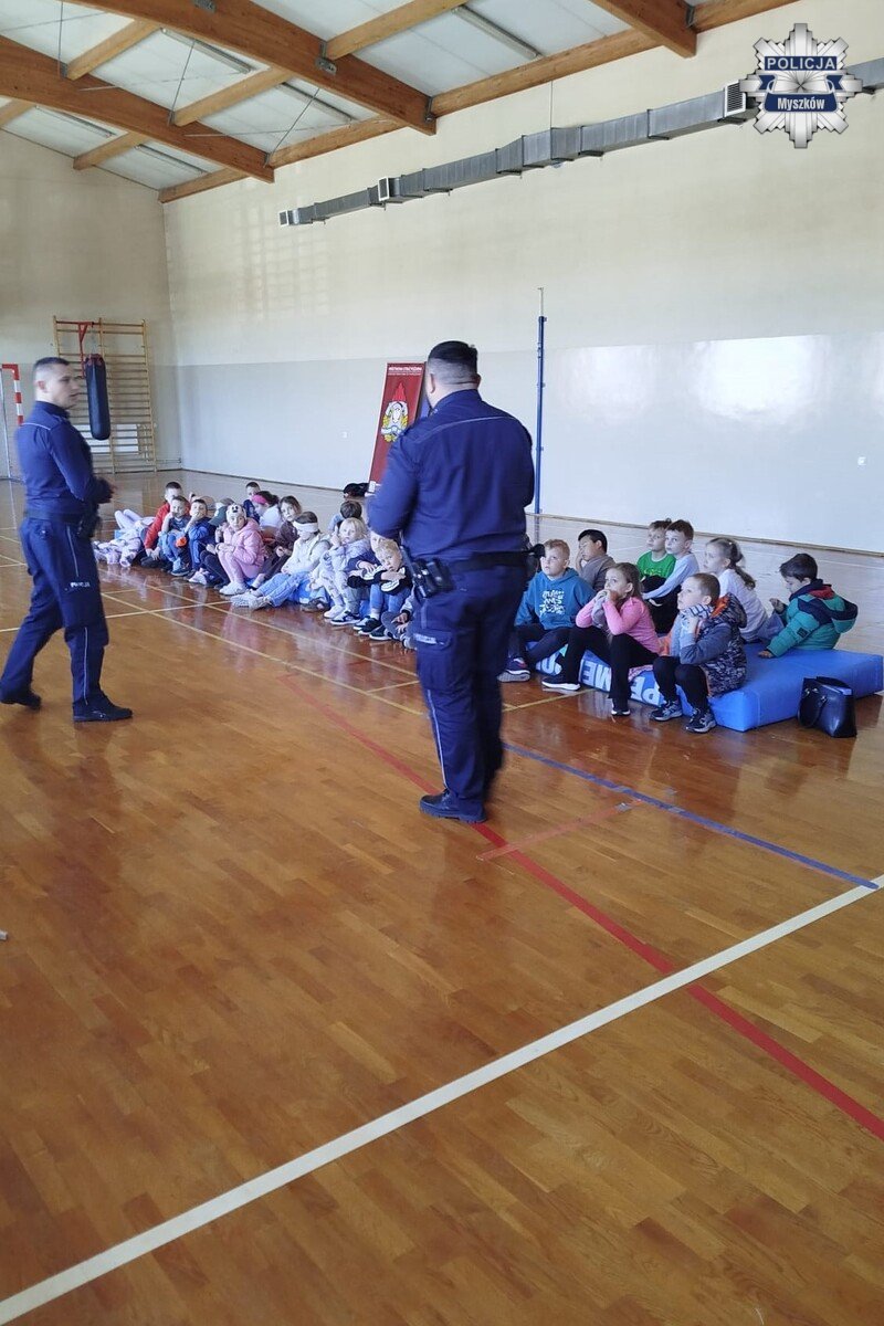 Dzielnicowi, strażnicy miejscy oraz strażacy z Myszkowa zorganizowali działania edukacyjne pod nazwą „Bezpieczny Przedszkolak”. W środę, w ramach tej inicjatywy, dzieci z przedszkola „Bajka” oraz innego przedszkola w Myszkowie miały okazję uczestniczyć w spotkaniu, podczas którego uczyły się zasad bezpieczeństwa na drodze, sposobów wzywania pomocy oraz postępowania w przypadku spotkania z bezpańskim psem. Policjanci, wspólnie z dziećmi, przeprowadzali ćwiczenia praktyczne, które miały na celu utrwalenie przekazanej wiedzy teoretycznej. Przedszkolaki wykazały się dużą wiedzą, bezbłędnie odpowiadając na pytania zadawane przez funkcjonariuszy.