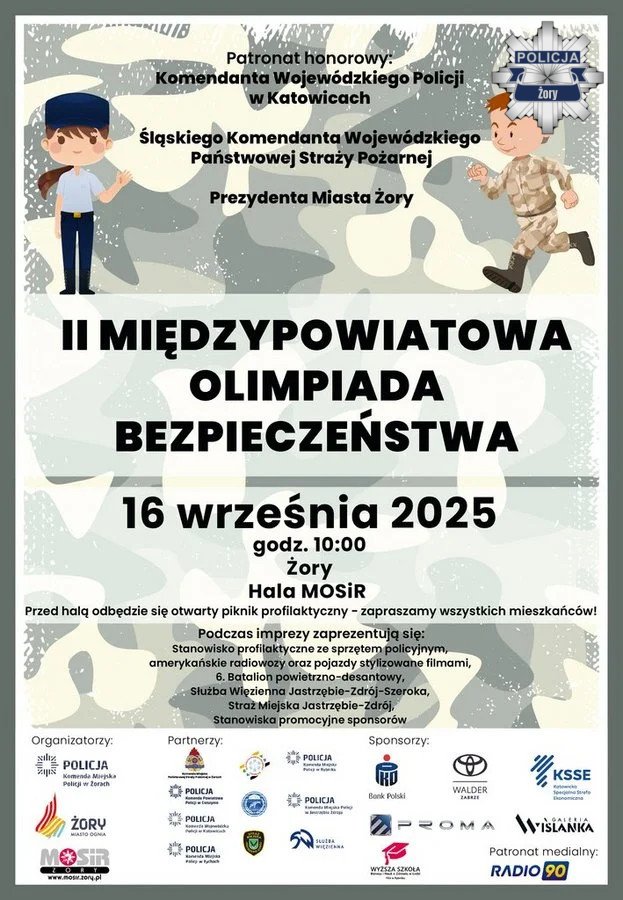 Olimpiada rozpocznie się o godzinie 10:00 w hali MOSiR przy ulicy Folwareckiej 10, a część sportowa zawodów odbędzie się w Parku Cegielnia. Uczestnicy, reprezentujący szkoły z Żor, Rybnika, Cieszyna, Tychów oraz Jastrzębia-Zdroju, zmierzą się w konkurencjach takich jak test wiedzy ogólnej, sprawdzian umiejętności udzielania pierwszej pomocy, konkurs strzelecki z broni laserowej, pokonywanie toru przeszkód oraz bieg drużynowy. Celem olimpiady jest promowanie postaw prospołecznych oraz zachęcanie młodzieży do pracy w służbach mundurowych.
