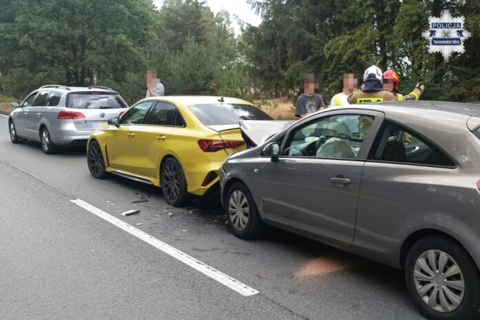 Do zdarzenia doszło, gdy 68-letni kierowca opla z Chorzowa nie zachował bezpiecznej odległości i uderzył w jadące przed nim audi, prowadzone przez 19-latka z powiatu lublinieckiego. Siła uderzenia spowodowała, że audi zderzyło się z volkswagenem, którym podróżował 40-letni mieszkaniec Piekar Śląskich. Na szczęście, mimo groźnie wyglądającej sytuacji, żadna z osób nie doznała obrażeń. Policja potwierdziła, że wszyscy kierowcy byli trzeźwi i posiadali wymagane uprawnienia do kierowania pojazdami. Sprawca kolizji został ukarany mandatem oraz punktami karnymi.