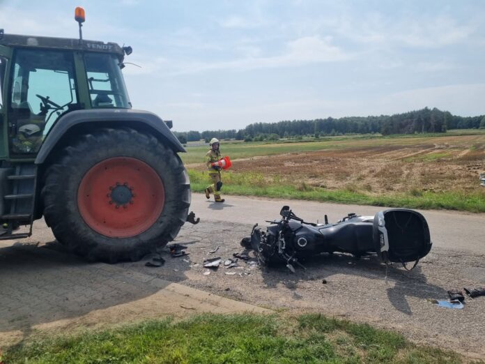 – 31-letni kierujący motocyklem suzuki wyprzedzając, nie zauważył skręcającego na własną posesję kierującego ciągnikiem rolniczym – mówi nam starszy aspirant Joanna Wiącek Głowacz.