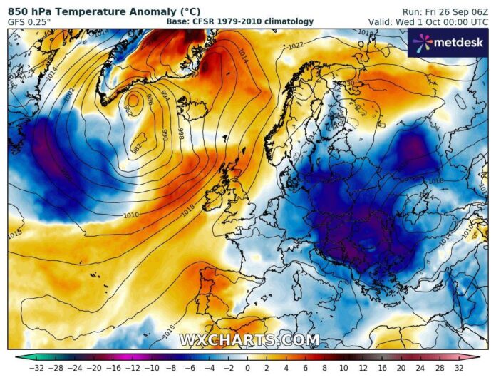 Za zmianę odpowiada wyż znad Rosji, który sprowadzi wilgotną i pochmurną aurę. Miejscami, szczególnie na wschodzie i południowym wschodzie, możliwe są opady do 30 mm. Dodatkowo pojawi się przenikliwy wiatr ze wschodu.