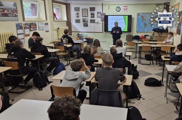 Policjanci w Oleśnie prowadzą spotkania z uczniami szkół ponadpodstawowych, aby edukować młodzież na temat ich praw i obowiązków oraz konsekwencji wynikających z ich lekceważenia. Inicjatywa ta jest częścią kampanii „Dzieciństwo bez przemocy”.