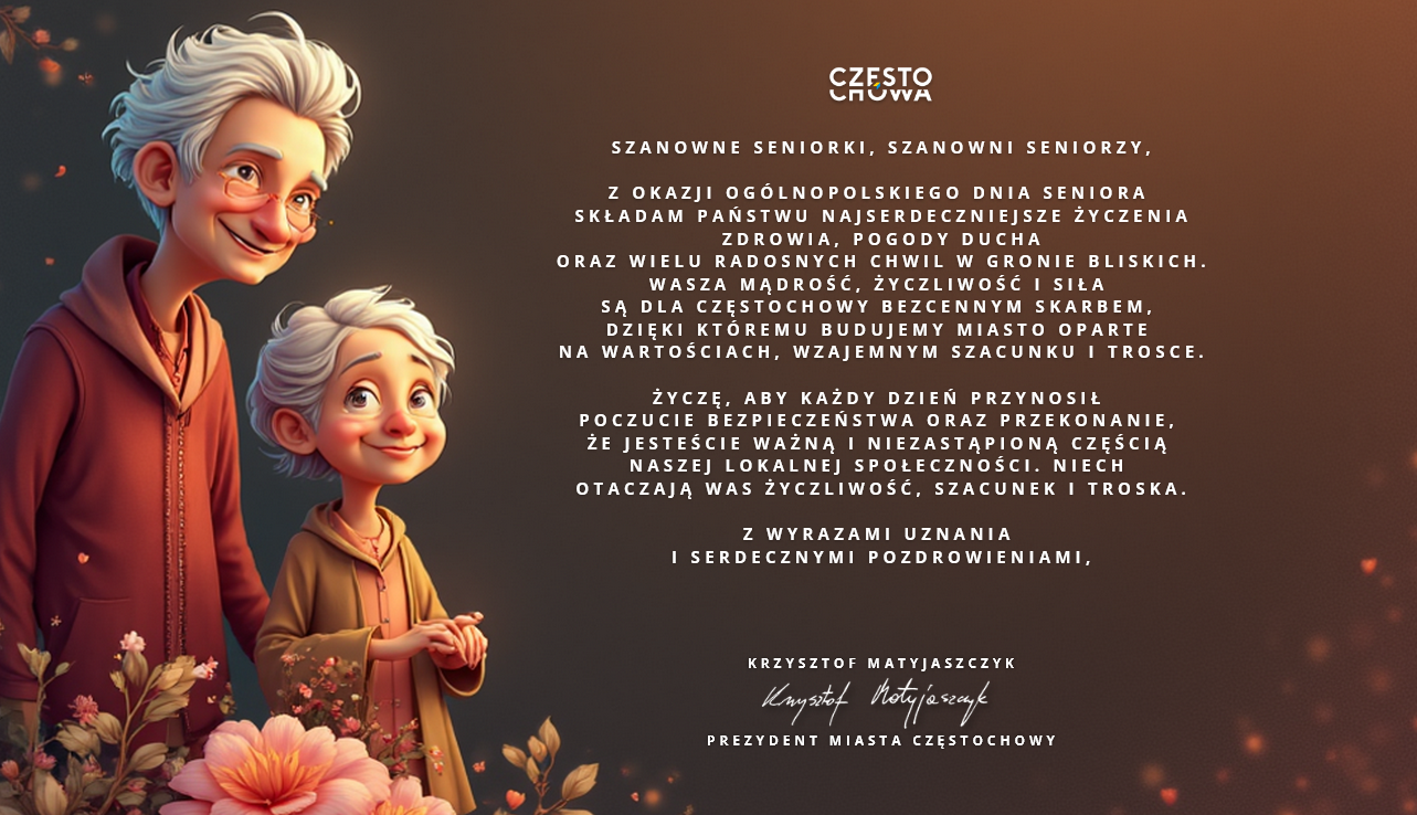 Ogólnopolski Dzień Seniora to czas, kiedy szczególną uwagę poświęca się osobom starszym, podkreślając ich rolę i znaczenie w społeczeństwie. W Częstochowie Prezydent miasta, Krzysztof Matyjaszczyk, w imieniu władz samorządowych, złożył życzenia wszystkim seniorom, wyrażając wdzięczność i szacunek dla ich doświadczenia i mądrości.