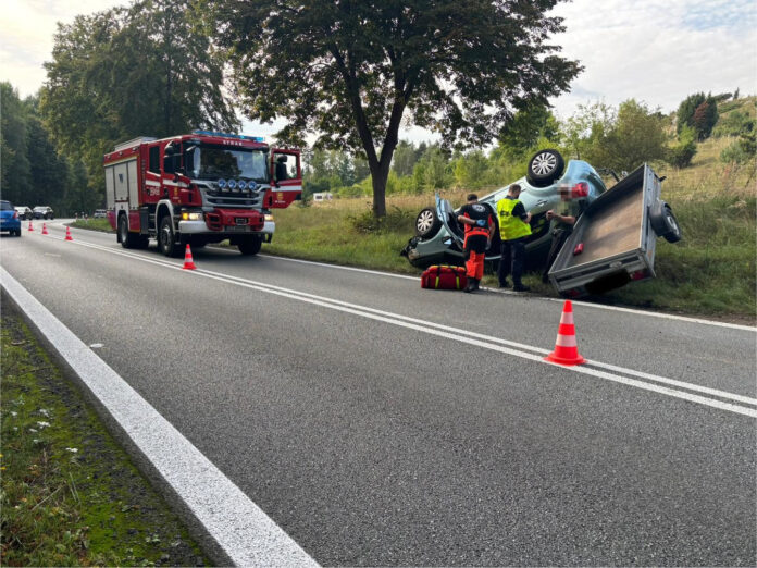 74-latek, chcąc uniknąć zderzenia, zjechał na pobocze, gdzie jego samochód dachował. Mężczyzna z obrażeniami ciała został przewieziony do szpitala. Obaj kierujący byli trzeźwi.