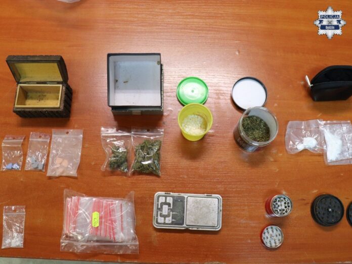 Policjanci z Czeladzi, działając na podstawie nakazu Sądu Okręgowego w Sosnowcu, ustalili miejsce pobytu poszukiwanego 34-latka. Mężczyzna, który miał do odbycia dwuletnią karę za oszustwa i posiadanie narkotyków, został zaskoczony przez funkcjonariuszy, gdy otworzył drzwi trzymając worek z amfetaminą. Podczas przeszukania mieszkania znaleziono amfetaminę, marihuanę oraz tabletki ecstasy, z których można było przygotować ponad trzysta porcji dilerskich.