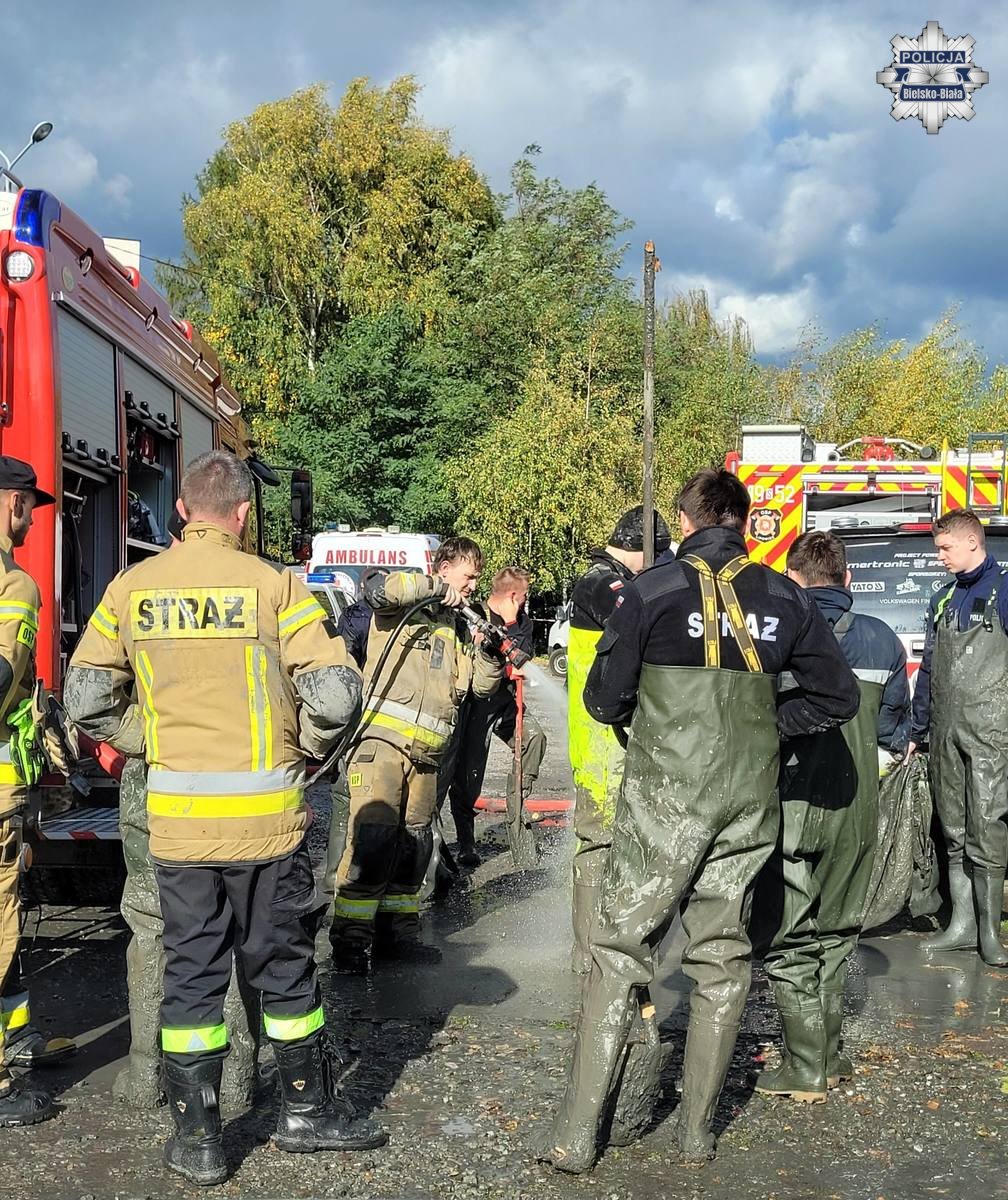 W akcji uczestniczą znaczne siły policyjne i ratownicze, w tym funkcjonariusze z Bielskiego Garnizonu, Samodzielnego Pododdziału Prewencji Policji w Bielsku-Białej, Oddziału Prewencji Policji w Katowicach oraz liczne jednostki straży pożarnej. Wsparcie zapewniają także funkcjonariusze z Centrum Poszukiwań Osób Zaginionych oraz policjanci z Komendy Stołecznej Policji z psami szkolonymi do poszukiwania zwłok.