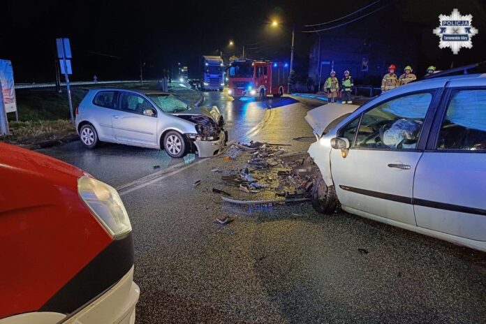 Zgłoszenie o czołowym zderzeniu na ulicy Zagórskiej wpłynęło do tarnogórskiej policji po godzinie 22.00. Funkcjonariusze z ruchu drogowego i prewencji, którzy przybyli na miejsce, ustalili, że 19-letni kierowca volkswagena, jadąc w kierunku centrum, stracił panowanie nad pojazdem na łuku drogi i zjechał na przeciwległy pas. Tam doszło do zderzenia z nadjeżdżającym renault, którym kierował 34-letni mieszkaniec Tarnowskich Gór.