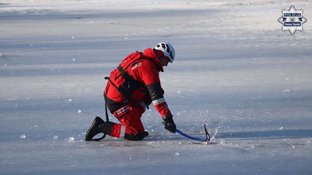Piekarscy policjanci, wspólnie z innymi służbami, przeprowadzili wczoraj ćwiczenia ratownictwa lodowego na zamarzniętym zbiorniku wodnym. Działania miały na celu doskonalenie umiejętności udzielania pomocy osobom, które wpadły do wody na skutek załamania się lodu.