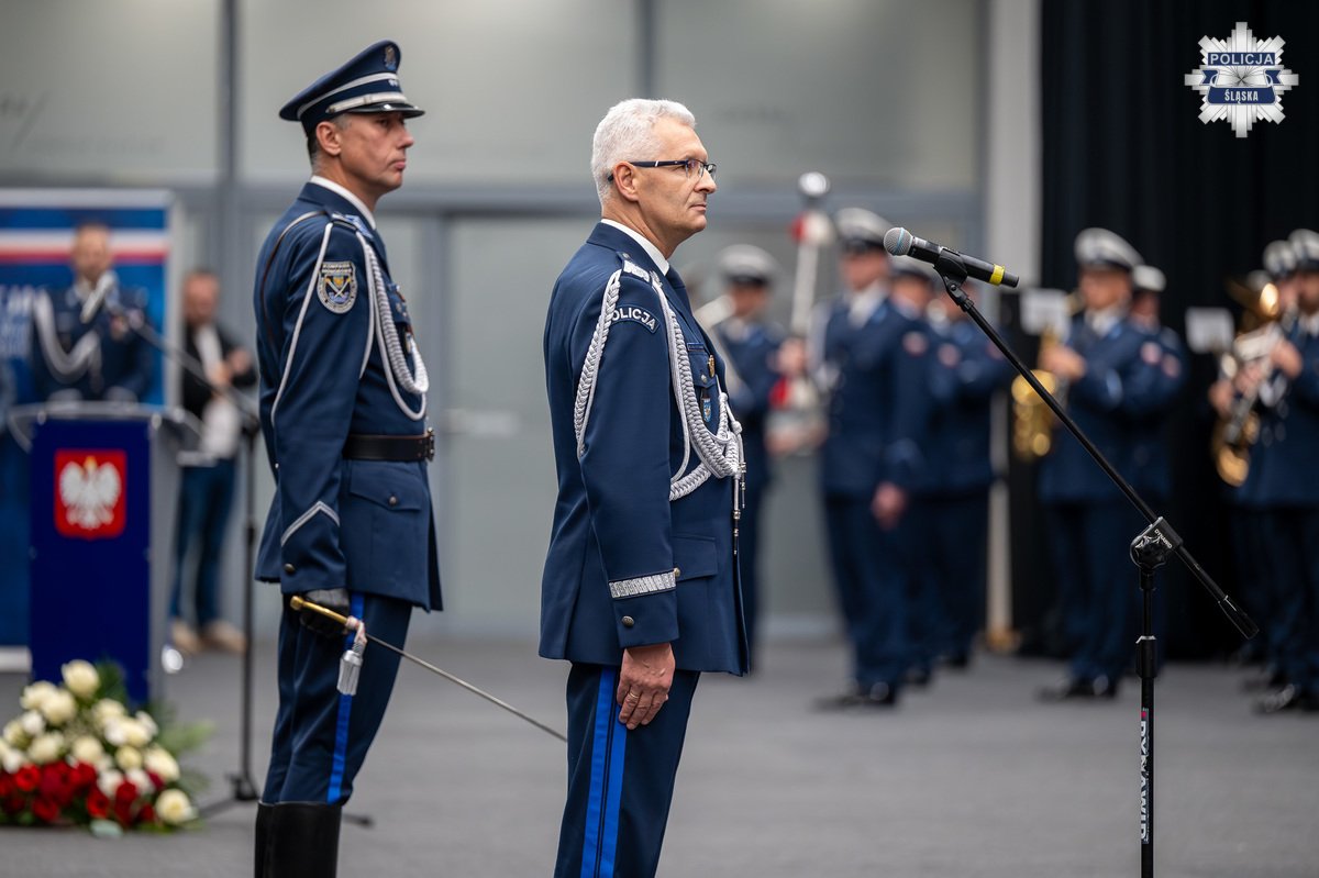 Uroczystość była także okazją do ślubowania 131 nowych funkcjonariuszy, w tym 26 kobiet, którzy z dumą dołączyli do szeregów Policji. Komendant Wojewódzki podkreślił znaczenie ich wyboru zawodowego oraz wyraził wdzięczność za wsparcie rodzin nowo przyjętych policjantów.