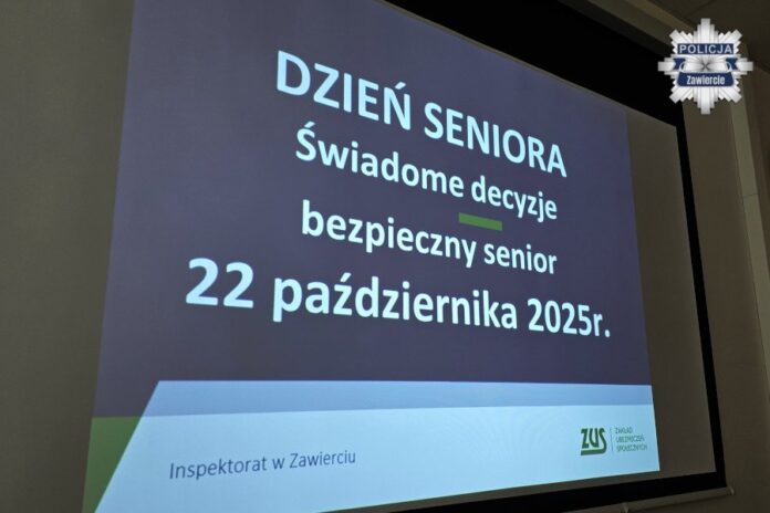 Zawierciańscy policjanci wzięli udział w spotkaniu z seniorami, które odbyło się w Inspektoracie Zakładu Ubezpieczeń Społecznych w Zawierciu. Wydarzenie było częścią ogólnopolskiej akcji „Świadome decyzje – Bezpieczny senior”, mającej na celu zwiększenie świadomości na temat bezpieczeństwa wśród starszych osób.