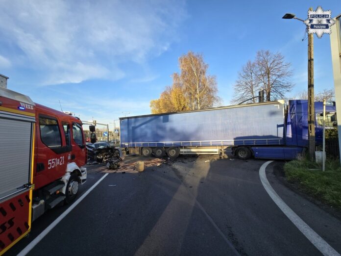 Do wypadku doszło około godziny 13.40 na skrzyżowaniu z ulicą Polne Domy. Jak wynika z ustaleń policji, 49-letni obywatel Macedonii, kierujący ciężarówką marki Volvo, wykonywał manewr skrętu w lewo, gdy doszło do zderzenia z peugeotem, który poruszał się prawym pasem w kierunku Tychów. Obaj kierowcy byli trzeźwi. Jesienne warunki pogodowe mogą być zdradliwe, dlatego policja przypomina o zachowaniu ostrożności na drogach.