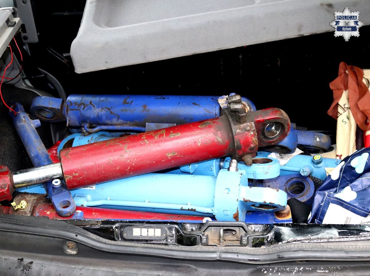 30 września policjanci z Bytomia zostali powiadomieni o kradzieży 14 siłowników hydraulicznych z jednej z lokalnych firm. Zgłoszenie wskazywało, że do przestępstwa doszło w nocy z 29 na 30 września. Funkcjonariusze szybko udali się na miejsce zdarzenia, gdzie w pobliżu zauważyli podejrzany samochód osobowy. W jego bagażniku odkryli skradzione przedmioty.