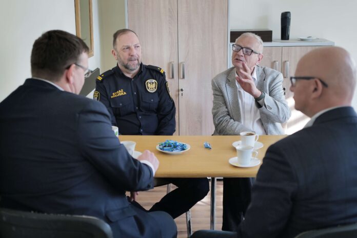W Komendzie Straży Miejskiej przy ul. Krakowskiej zapoznał się z działaniem miejskiego centrum monitoringu wizyjnego. Podczas spotkania z zastępcą komendanta Straży Miejskiej Andrzejem Sową poruszono m.in. kwestie działań związanych z zabezpieczeniem terenów byłego Elanexu, które mają zostać wkrótce protokolarnie przejęte od likwidatora zakładu po rozstrzygniętej na rzecz miasta licytacji komorniczej.